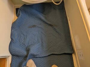 キッチンの床を養生します。
