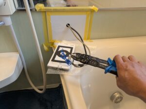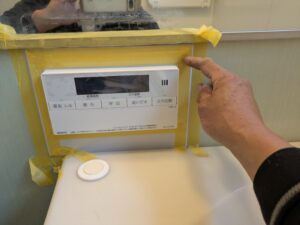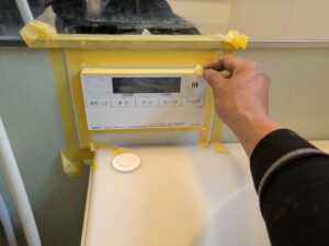 浴室リモコンのまわりをマスキングテープで養生します。