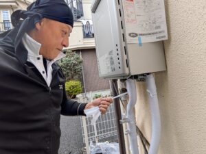 お客様と一緒に水漏れガス漏れ確認をします。