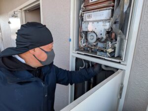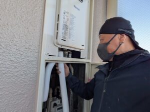 ガス給湯器交換施工中の様子