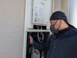 給湯器本体の電源を入れて点火試験をします。