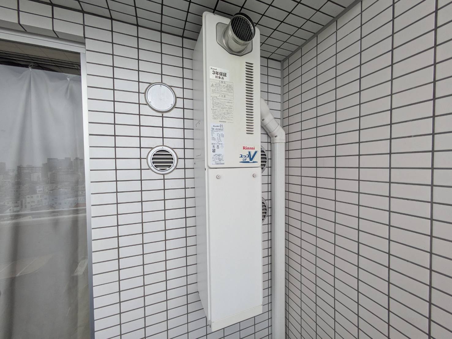 マンションのベランダに設置される給湯器には、設置場所の条件によって「前方排気タイプ」が選ばれるケースがあります。特に重要なのがベランダの幅(奥行)で、一般的にベランダの奥行きが1200mm(1.2メートル)を超える場合、安全基準上、排気ガスの滞留を防ぐ必要があるため、給湯器は「前方排気タイプ」にする必要があります。通常の標準排気タイプでは、排気がベランダの壁や天井にこもりやすく、換気不良による不完全燃焼や火災リスクが高まるため、建築基準法やガス機器設置基準に従って、排気ガスをベランダの外へしっかり逃がす前方排気型が推奨されます。前方排気給湯器は、排気口が本体前面にあり、直接屋外へ排気を放出できる構造になっており、安全性と快適性を確保します。ベランダが広いマンションにお住まいの方は、給湯器交換時に排気方向の確認を行い、適切なタイプを選定することが重要です。